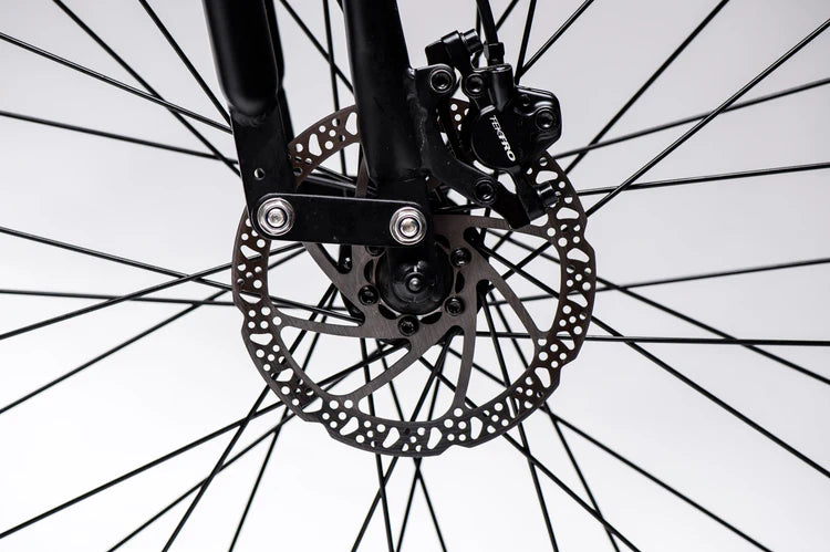 VALLKREE electric bikes are equipped with custom hydraulic disc brakes, ensuring superior stopping power and safety.